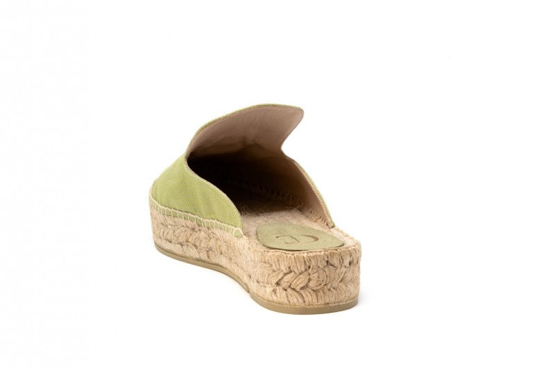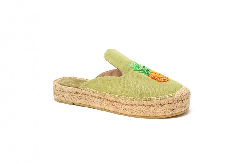 Suede mule espadrille with jute and double rubber sole. Embroidered with an original design and finished with leather lining.